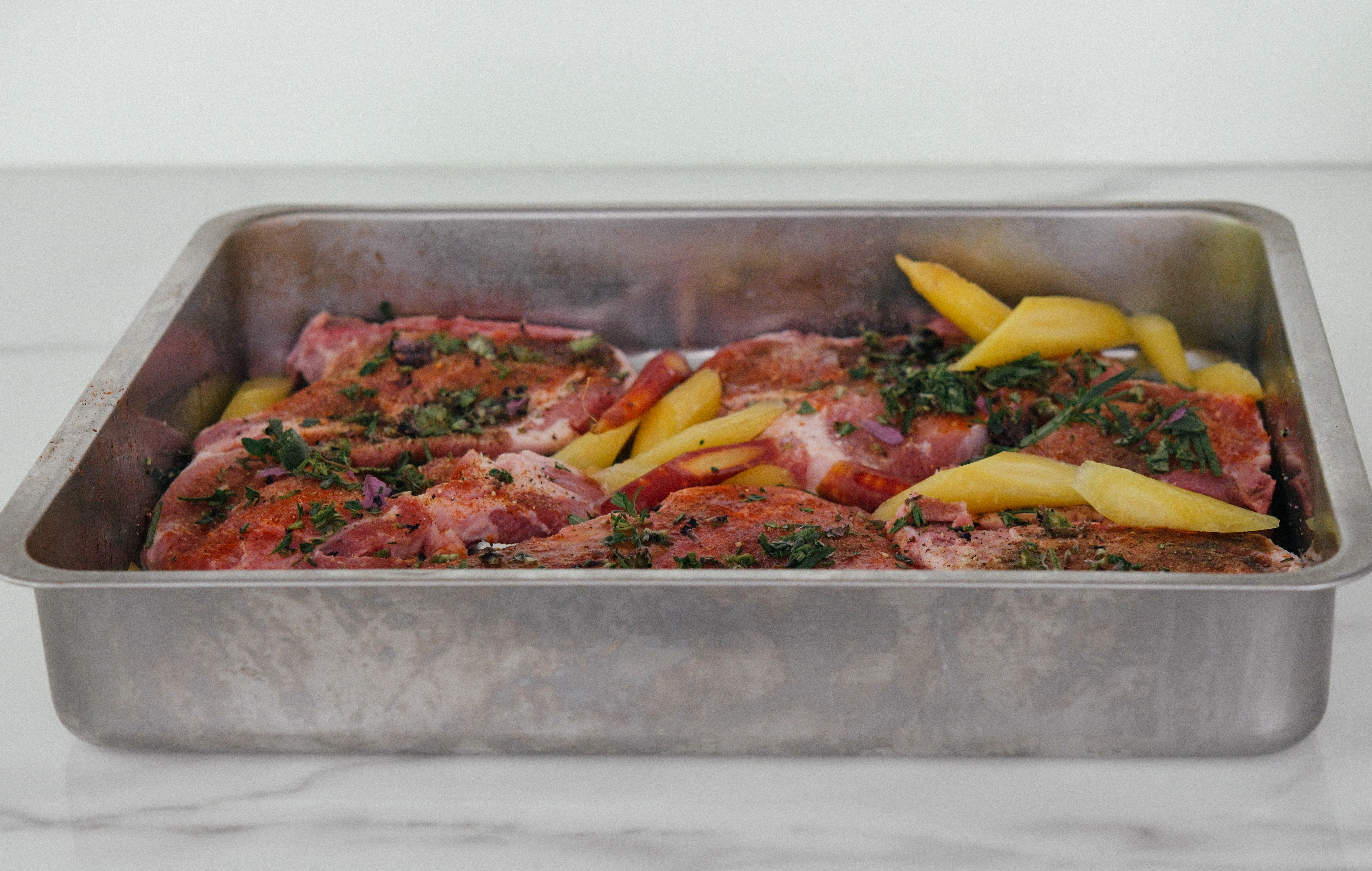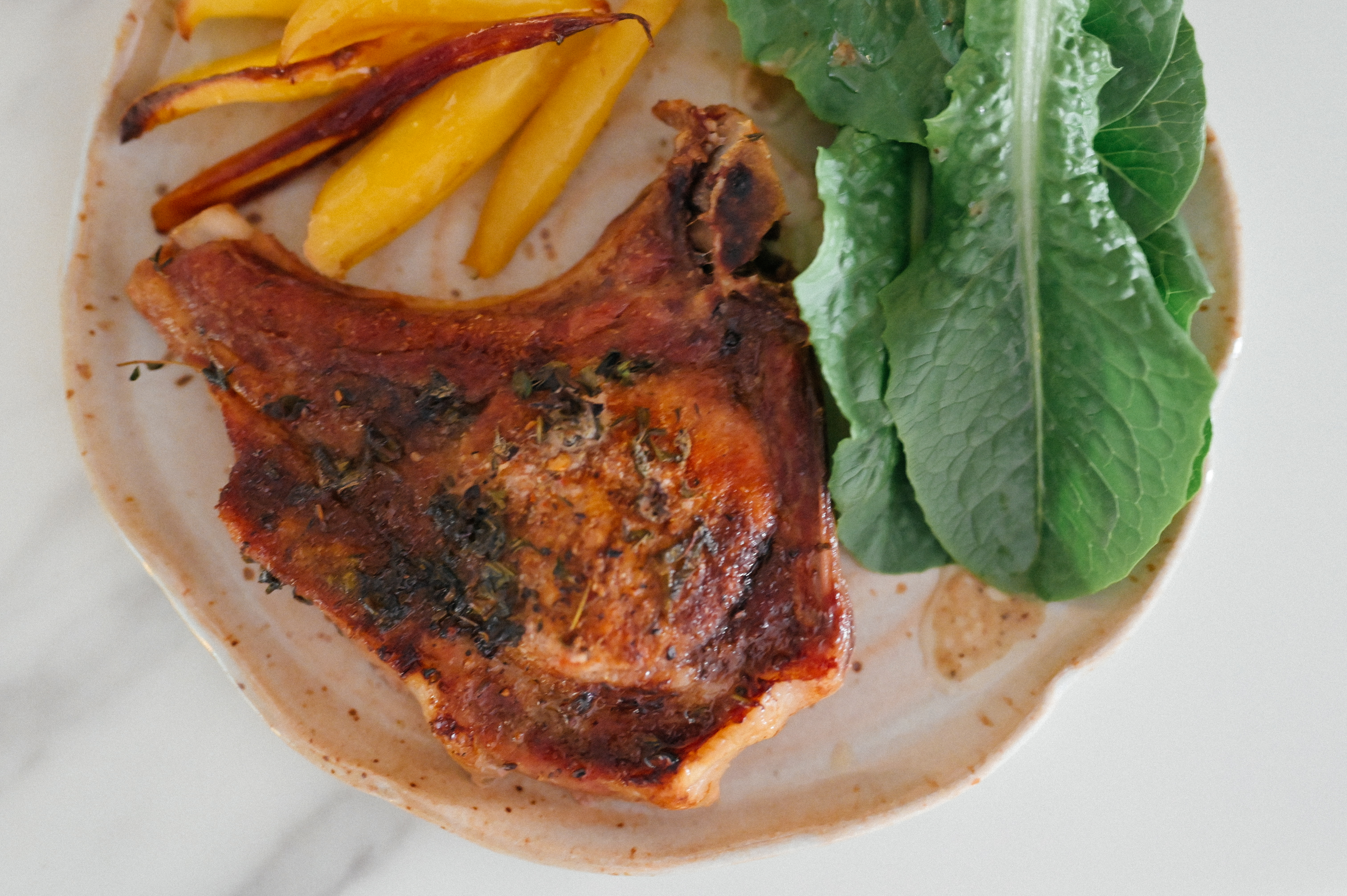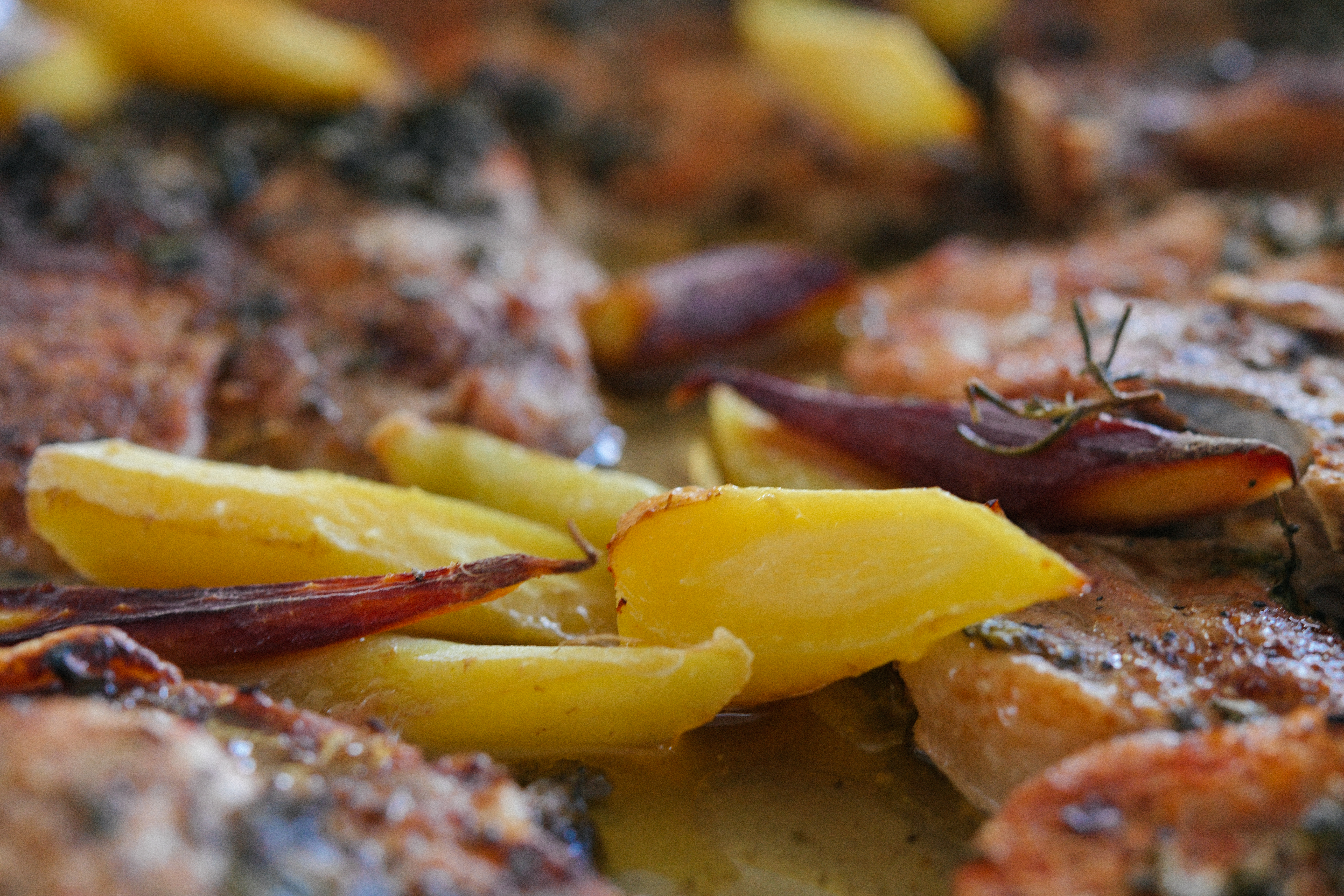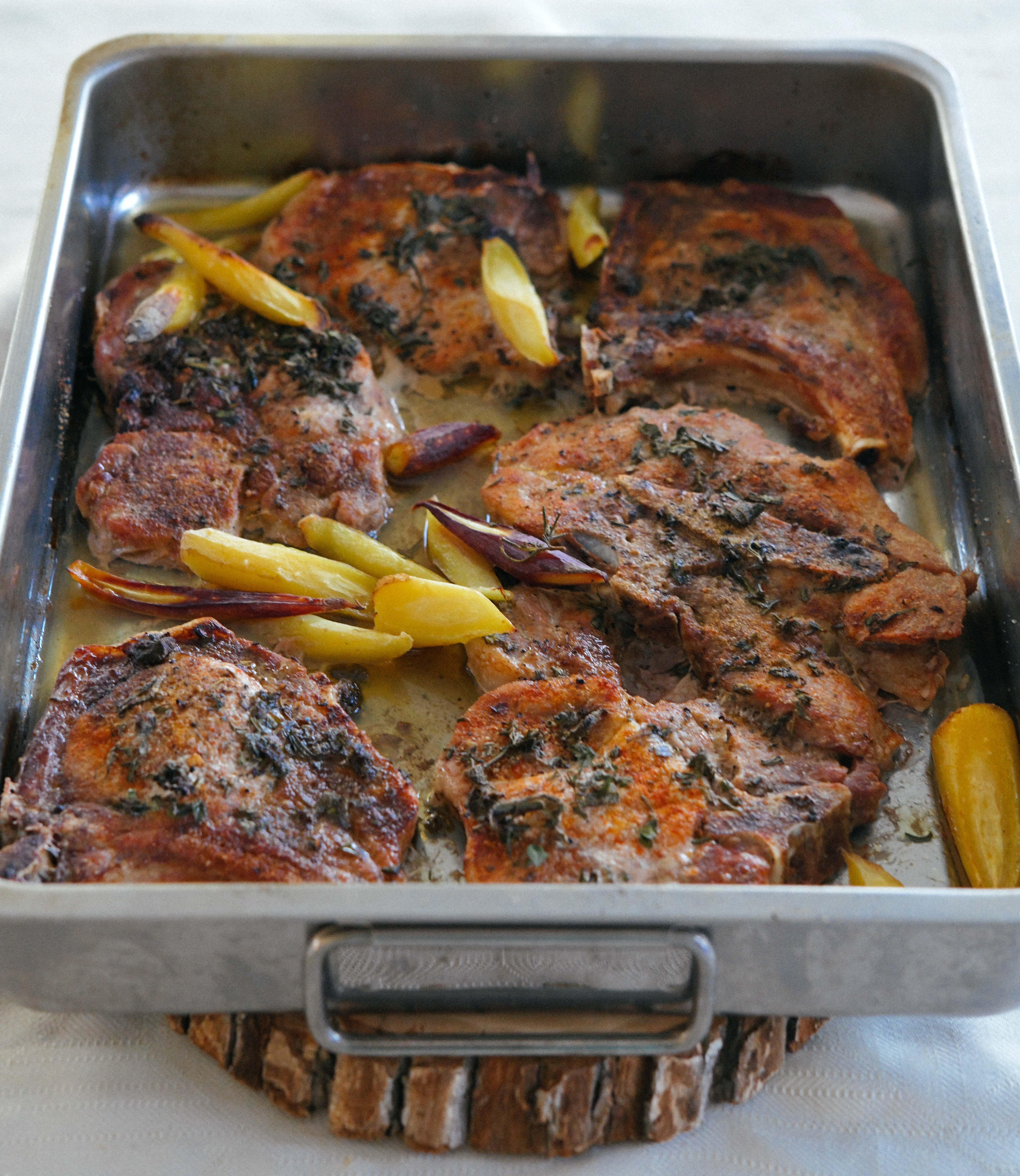 - Feel free to add some carrots and/or potatoes to roast right along with the pork chops.