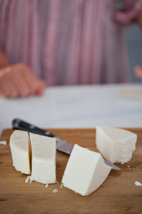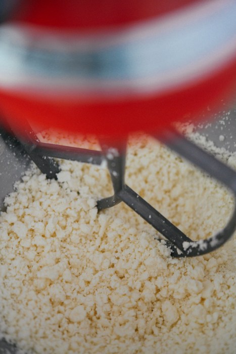 - Crumble the cheese using your hands or use your mixed with the paddle attachment.