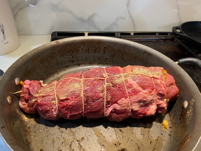For Christmas we made three beef tenderloins. Luckily I took some quick photos to show you here. Nothing fancy, but hopefully you get the idea: