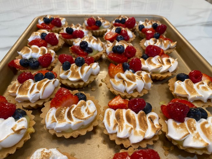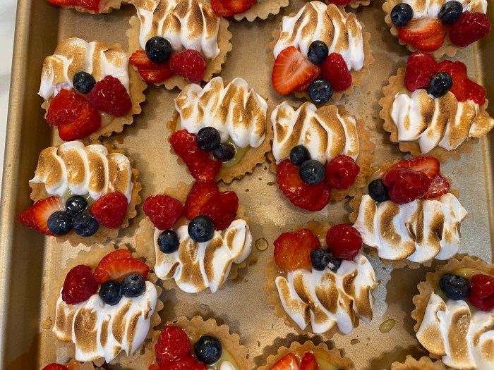 Short and sweet rings true for these little tarts. The shortbread crust is quick and easy to make, and the tartness of the lemon curd pairs well with the sweetness of the meringue, making it a tangy and distinctly palate pleasing treat.